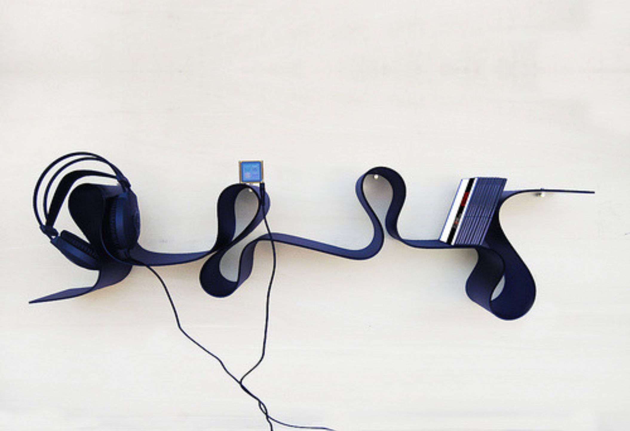 Lovely Rita, disegnata da Ron Arad per Kartell, ricorda un nastro che si piega più volte su se stesso. E’ una mensola dalla forma libera e sinuosa, come modellata da un soffio di vento. La struttura è in PVC colorato in massa e “flame retardant”.